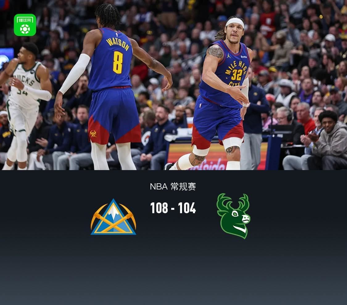 第四节掘金阿隆-戈登拿下8分,雄鹿字母哥拿下14分,最终掘金108-104战胜雄鹿