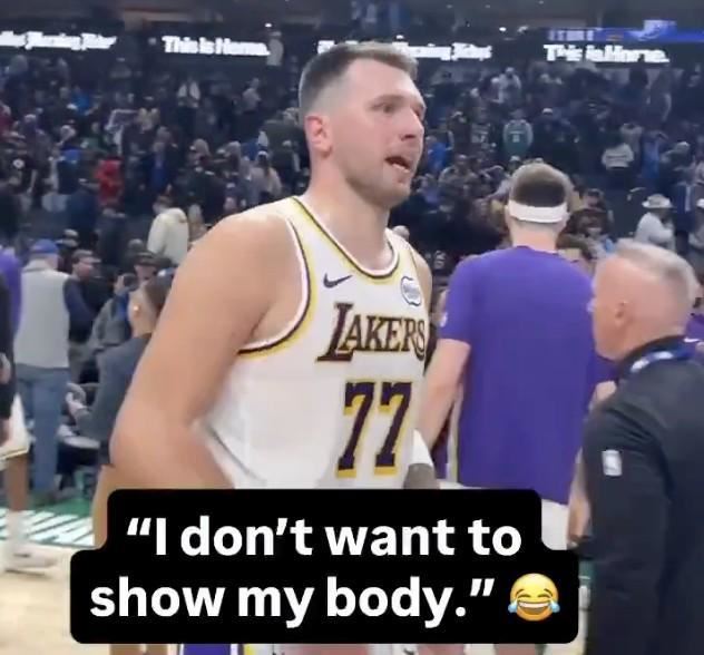 北京时间1月25日,NBA常规赛湖人客场116-110战胜独行侠。赛后,在场地中央发生了一幕趣事。比赛结束后,独行侠球员纳吉-马绍尔找到湖人队球员东契奇,希望能与他交换球衣,而东契奇表示:“嘿,纳吉,一会儿回去我再给你球衣,因为我不想在这露出我的身体。”说完后,东契奇也露出了“懂得都懂”的微笑。本场比赛,东契奇出场39分09秒,投篮15投8中,三分8中3,罚球15罚14中,砍下33分8板11助攻1抢断1盖帽,另外还有5次失误,他的正负值为+18。