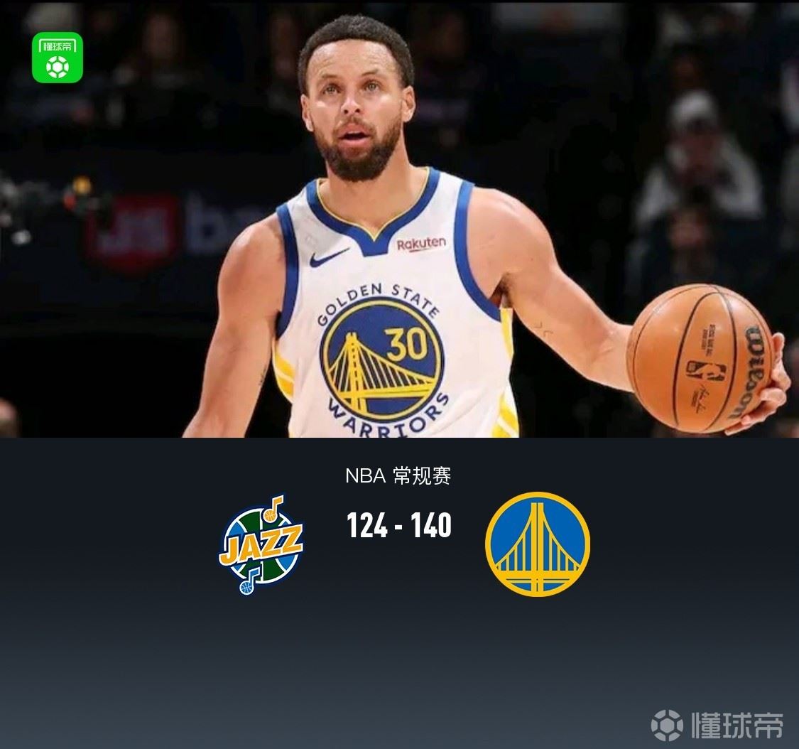 北京时间1月29日NBA 常规赛,犹他爵士对阵金州勇士。首节勇士依靠一波三分雨确立10分领先,次节双方相继打出高潮,半场勇士68-55爵士,第三节勇士一度领先21分,随后爵士反扑三节结束追至8分,末前前半段双方拉锯,后半段勇士替补一波15-0高潮彻底拉大分差,最终勇士8人上双140-124爵士。