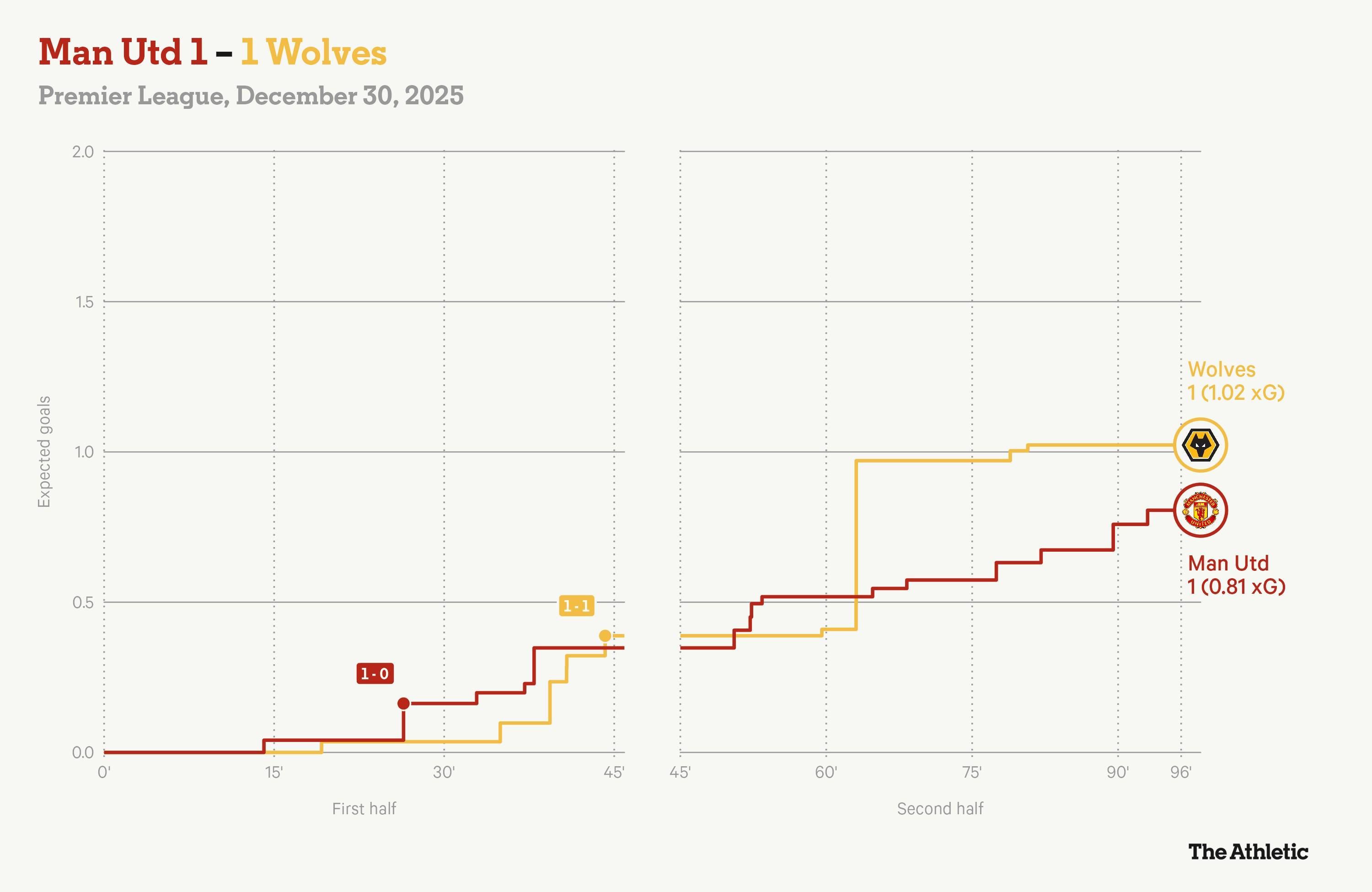 英超第19轮,曼联主场1-1战平狼队,赛后,The Athletic发表专题文章,分析并点评了本场比赛。